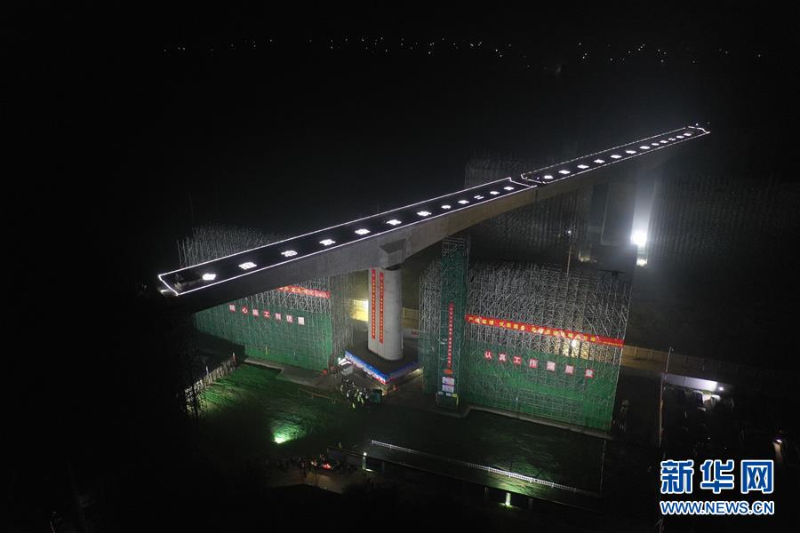 8月27日凌晨,施工人員在進行橋梁轉(zhuǎn)體施工。 新華社記者 楊世堯 攝