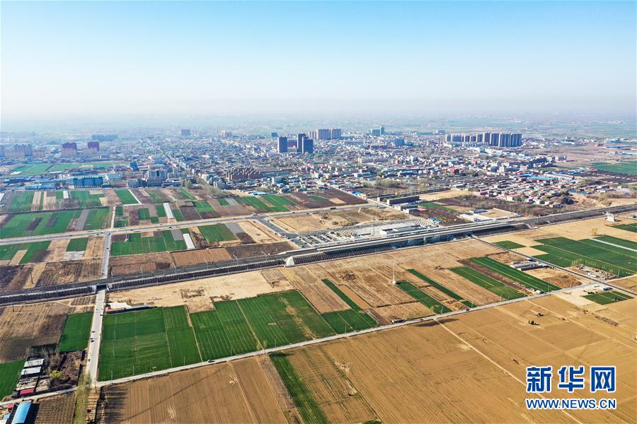 這是京雄城際鐵路施工現(xiàn)場(3月21日無人機拍攝)。新華社記者牟宇攝