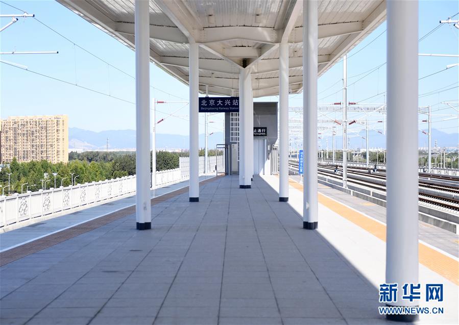 9月18日拍攝的京雄城際北京大興站站臺。新華社記者張晨霖?cái)z