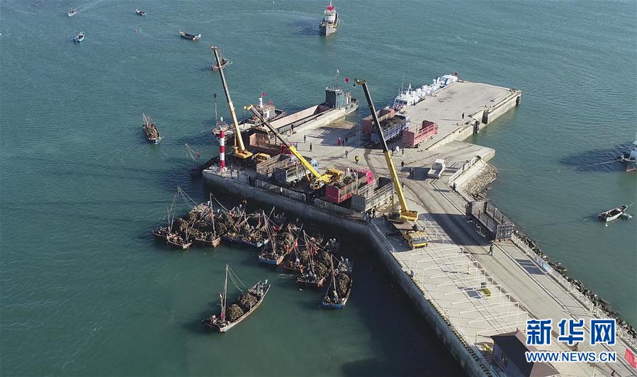 9月23日,滿載牡蠣的漁船返回碼頭(無人機(jī)拍攝)。新華社記者龍雷攝