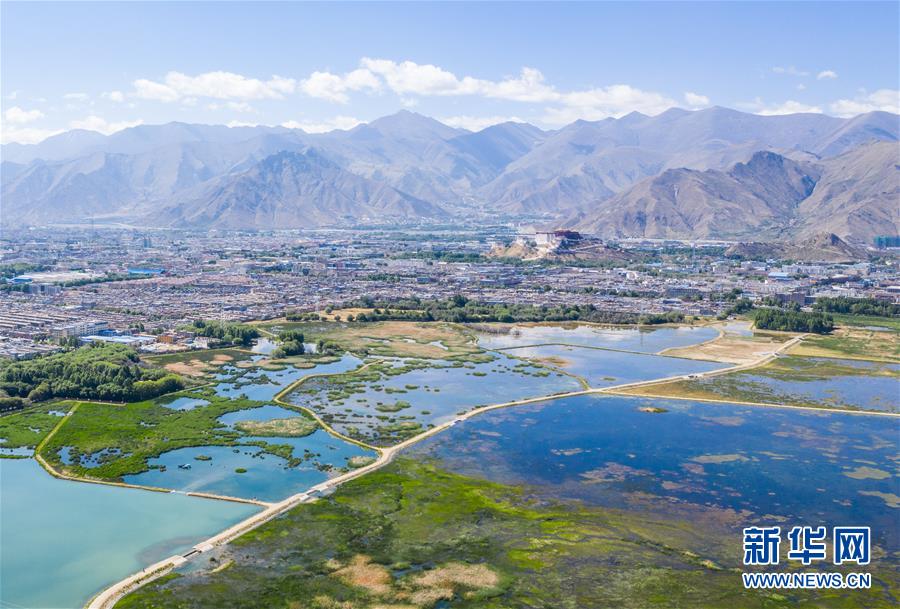 西藏拉魯濕地風(fēng)光(6月5日無人機(jī)拍攝)。新華社記者普布扎西攝