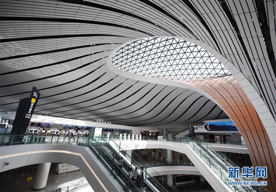 這是9月25日拍攝的北京大興國(guó)際機(jī)場(chǎng)航站樓內(nèi)部。新華社記者張晨霖?cái)z
