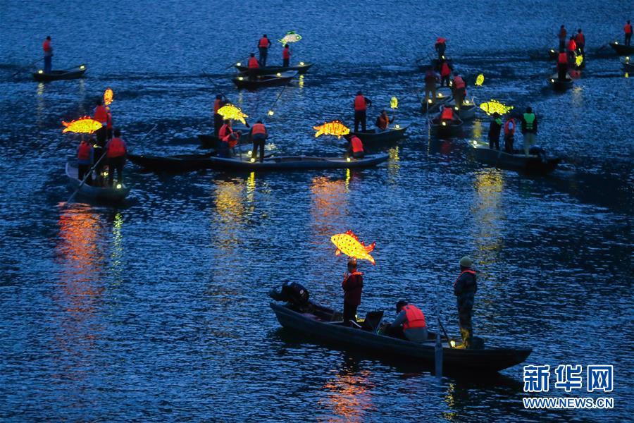 9月25日,在宋村鄉(xiāng)云源港的水面上,漁民劃著漁船,船頭點(diǎn)亮漁燈,構(gòu)成一幅“漁舟唱晚、萬家燈火”的美麗圖景。新華社記者 徐昱 攝