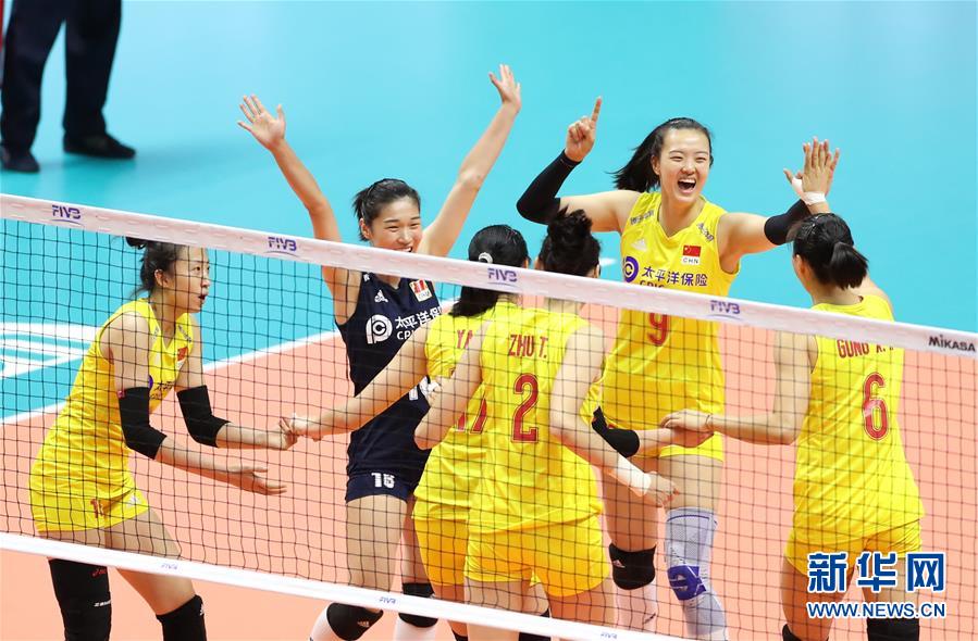 9月23日,中國隊球員在比賽中慶祝得分。當日,在日本札幌舉行的2019年女排世界杯賽第二階段A組循環(huán)賽中,中國隊以3比0戰(zhàn)勝美國隊。新華社記者杜瀟逸攝