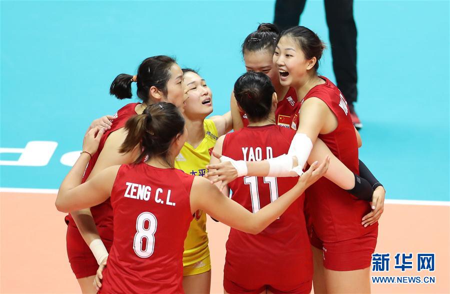 9月22日,中國隊球員在比賽中慶祝得分。當日,在日本札幌舉行的2019年女排世界杯賽第二階段A組循環(huán)賽比賽中,中國隊以3比2戰(zhàn)勝巴西隊。新華社記者杜瀟逸攝