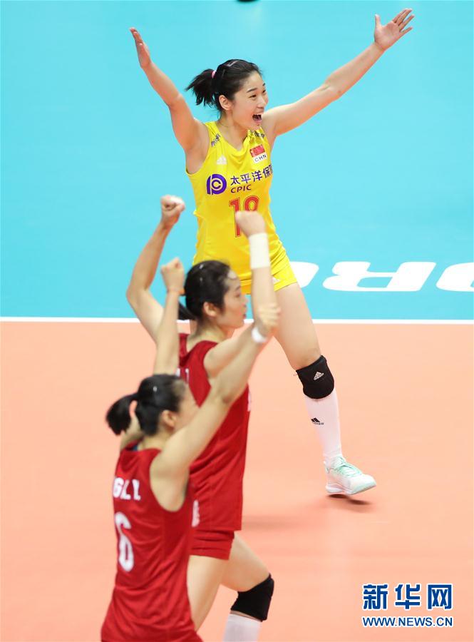 9月22日,中國隊球員在比賽后慶祝勝利。當日,在日本札幌舉行的2019年女排世界杯賽第二階段A組循環(huán)賽比賽中,中國隊以3比2戰(zhàn)勝巴西隊。新華社記者杜瀟逸攝