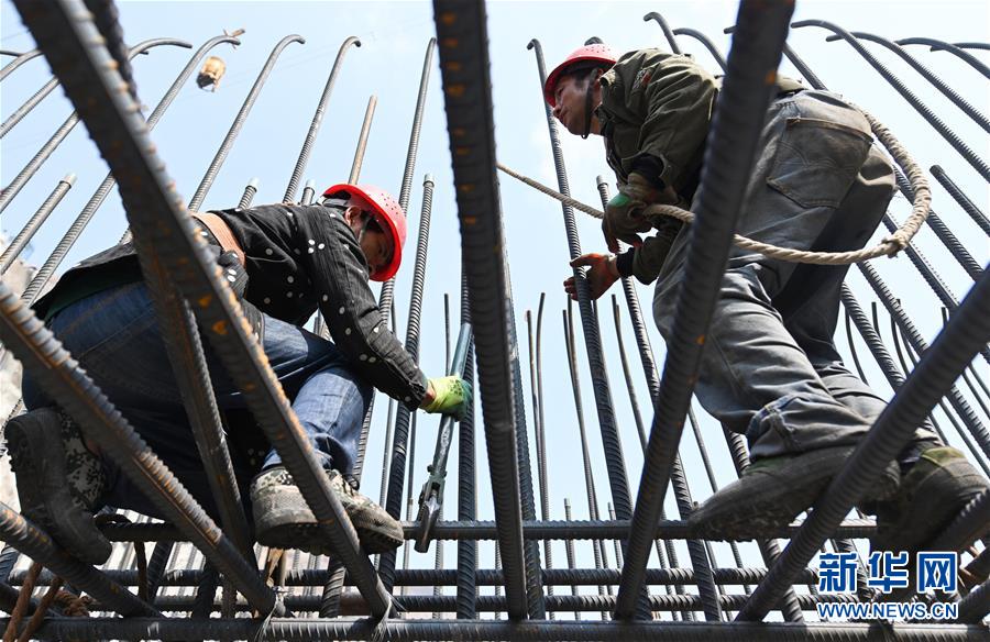 5月30日,工人在烏東德水電站大壩主體工程上施工。新華社記者陳曄華攝