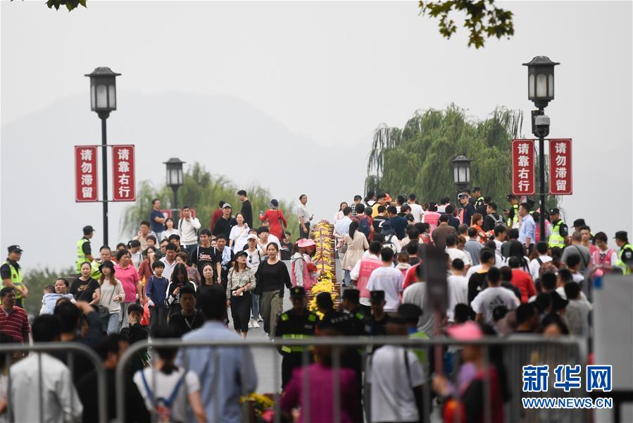 10月7日,杭州西湖風(fēng)景區(qū)的斷橋上游人絡(luò)繹不絕。