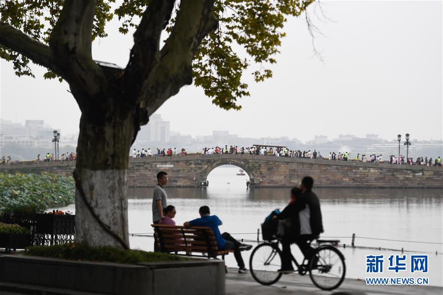 10月7日,游客在杭州西湖風(fēng)景區(qū)休閑游玩。新華社記者黃宗治攝