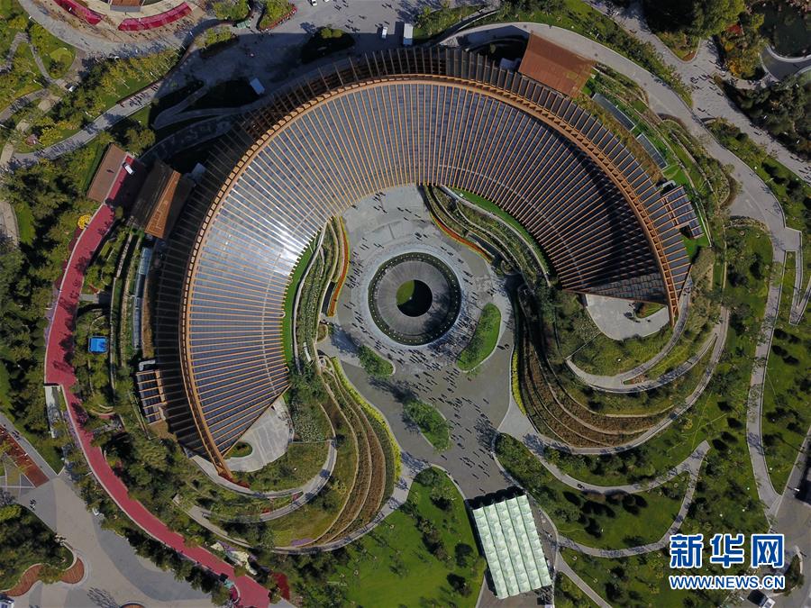 這是北京世園會中國館(10月7日無人機(jī)拍攝)。 新華社記者 張晨霖 攝