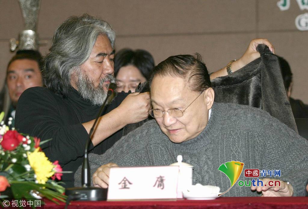 2005年1月10日,《神雕俠侶》劇組正式在第三個拍攝地—寧波象山開機。金庸與導(dǎo)演張紀(jì)中。