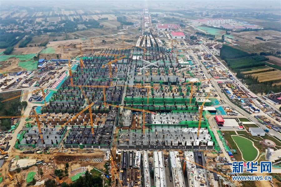 建設中的雄安站(10月10日無人機拍攝)。