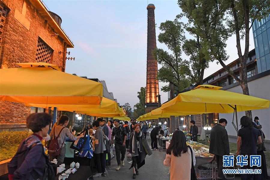 游客在江西景德鎮(zhèn)陶溪川文創(chuàng)街區(qū)內(nèi)游覽參觀(2016年10月20日攝)。新華社記者 萬(wàn)象 攝