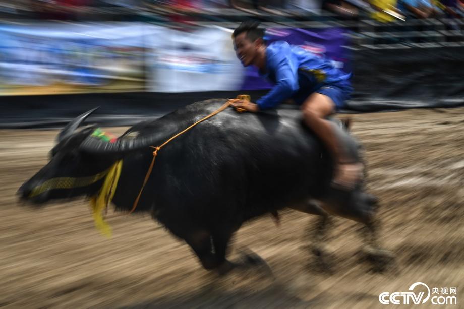 當?shù)貢r間2019年10月12日,泰國春武里舉行一年一度的水牛賽跑,選手騎??癖肌R曈X中國