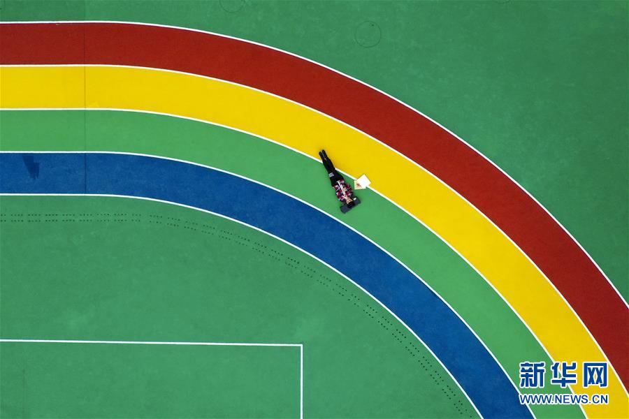 午休時(shí)間,王太樊在學(xué)校的操場(chǎng)上練習(xí)小號(hào)、背誦樂譜(10月10日無(wú)人機(jī)拍攝)。 新華社記者 劉潺 攝