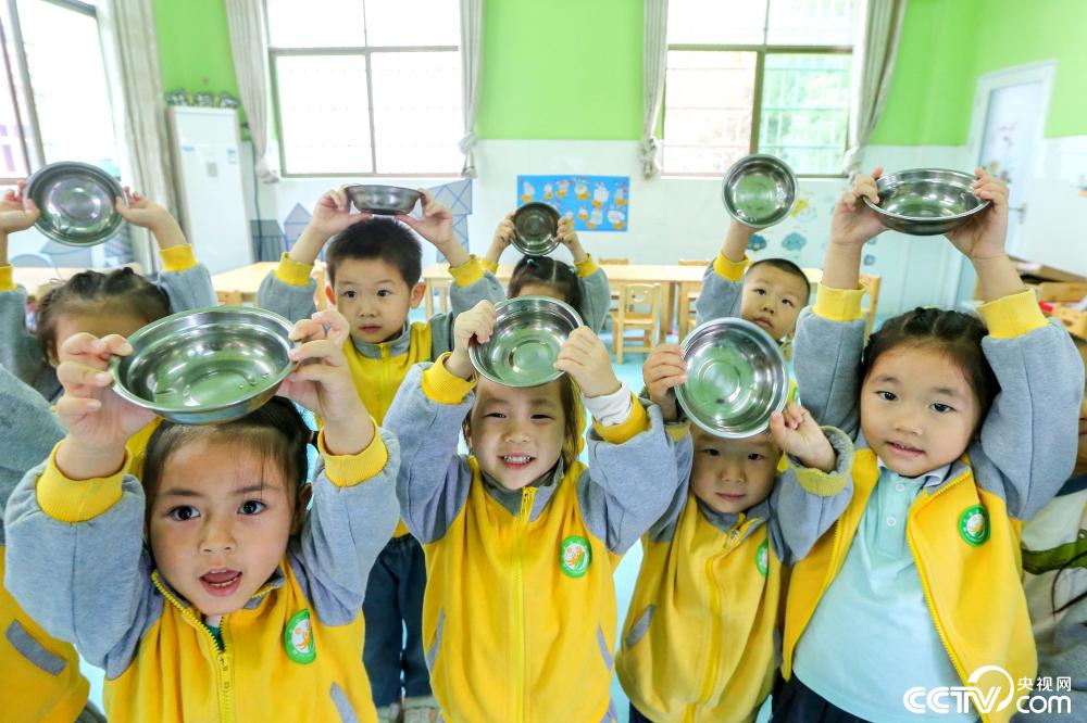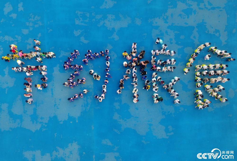 2019年10月15日,浙江金華,武義縣武陽幼兒園的小朋友在操場(chǎng)排成“節(jié)約糧食”四個(gè)大字,倡導(dǎo)節(jié)儉新風(fēng)尚。圖片來源:視覺中國(guó)