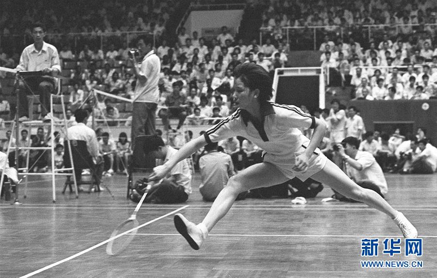圖為韓愛萍在杭州舉行的第二屆世界羽毛球錦標(biāo)賽女子單打比賽中跨步救球(資料照片),她最終奪得女單冠軍。新華社記者胡越攝