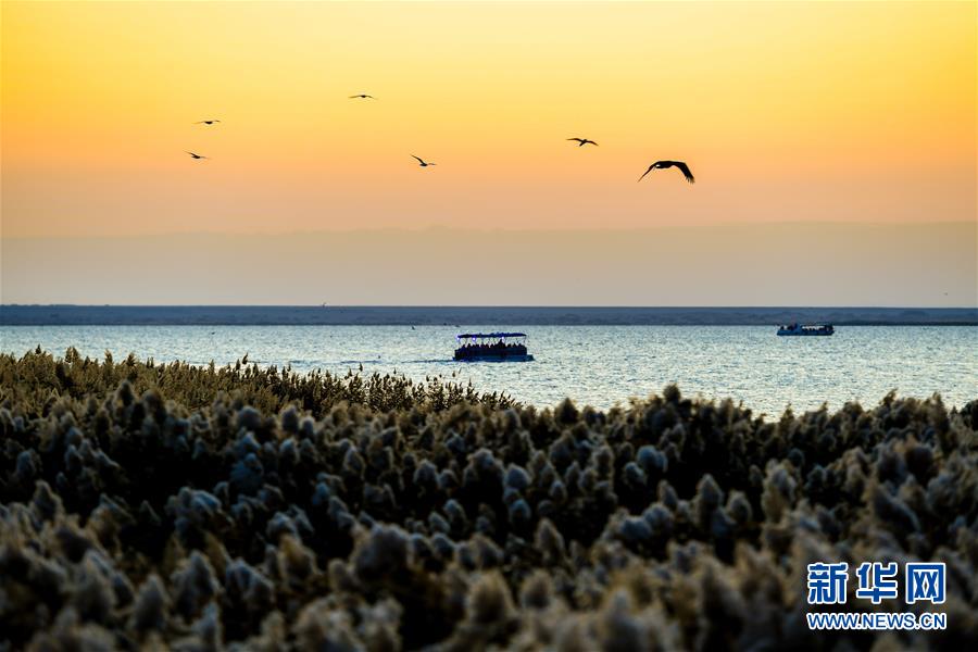 居延海位于內(nèi)蒙古阿拉善盟額濟(jì)納旗北部,是我國第二大內(nèi)陸河黑河的尾閭湖。其形狀狹長彎曲,猶如新月,額濟(jì)納河匯入湖中。2003年以來,隨著黑河分水工程的實(shí)施,干涸已久的東居延海湖盆重現(xiàn)碧波蕩漾的美景,煥發(fā)出勃勃生機(jī)。 新華社記者 彭源 攝