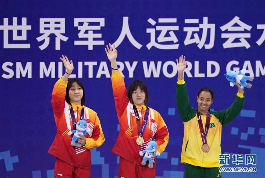 10月20日,中國(guó)隊(duì)選手吳慧敏(中)、包雪怡(左)在頒獎(jiǎng)儀式上。新華社記者金良快攝