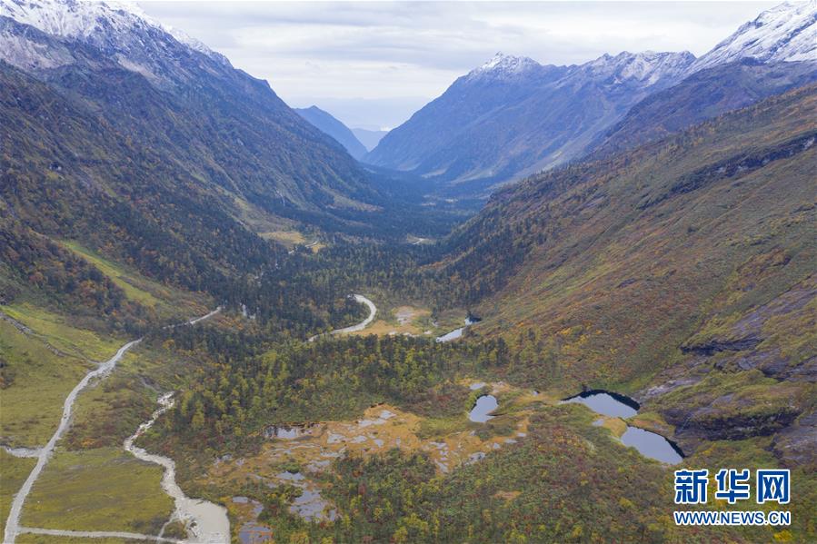 派墨公路沿線秋色(10月24日無人機拍攝)。 正在修建的派墨農(nóng)村公路起點位于西藏林芝市米林縣派鎮(zhèn),將通往墨脫縣解放大橋,公路沿線的深秋景色優(yōu)美如畫。 新華社記者 普布扎西攝