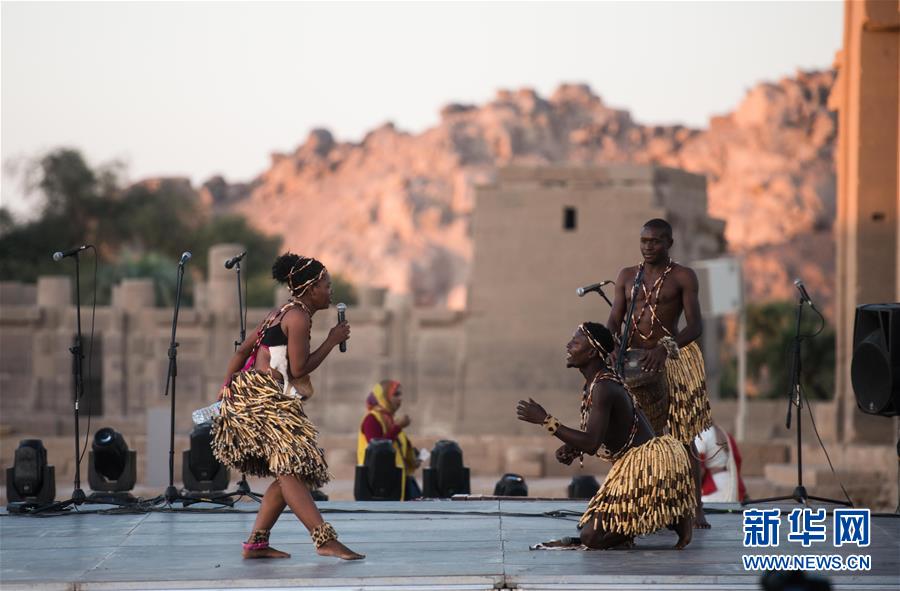 10月27日,演員在位于埃及阿斯旺的菲萊神廟表演。 第四屆中非藝術(shù)節(jié)27日在埃及南部歷史文化名城阿斯旺開(kāi)幕。來(lái)自中國(guó)、埃及、尼日利亞、烏干達(dá)、突尼斯等約30個(gè)國(guó)家的藝術(shù)團(tuán)在開(kāi)幕式上奉獻(xiàn)了各具特色的表演,吸引數(shù)百名當(dāng)?shù)赜^眾前往欣賞。 新華社記者 鄔惠我 攝
