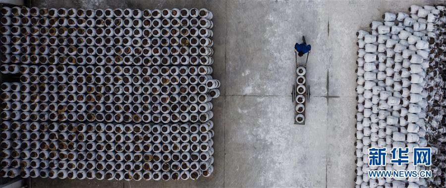 11月7日,古越龍山紹興酒股份有限公司釀酒一廠的工人用手推車運(yùn)送酒壇,開(kāi)啟黃酒“冬釀”序幕(無(wú)人機(jī)拍攝)。新華社記者徐昱攝