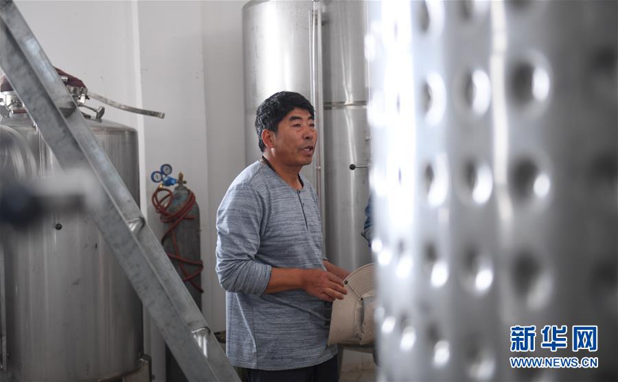 建廠生產(chǎn)并注冊(cè)“丁德良”牌干紅葡萄酒品牌的魯仁弟在他的酒廠里(6月3日攝)。新華社記者晉美多吉攝