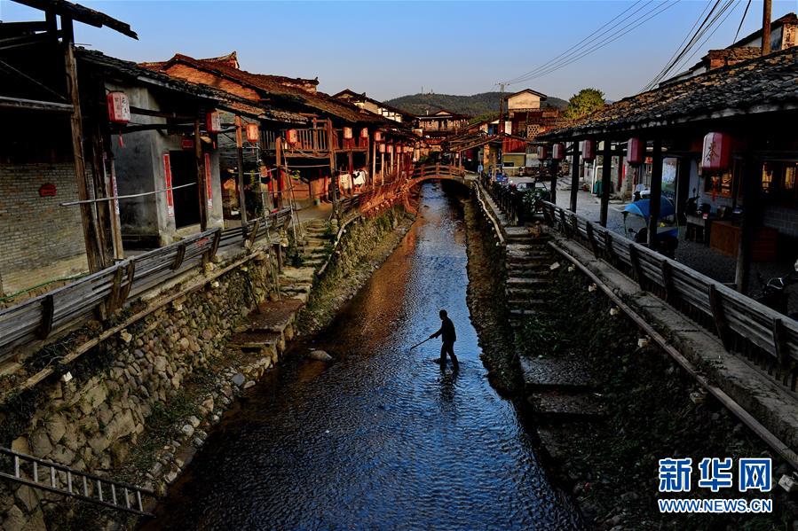 這是夕陽(yáng)下的武夷山下梅村(11月5日攝)。新華社記者馬平攝