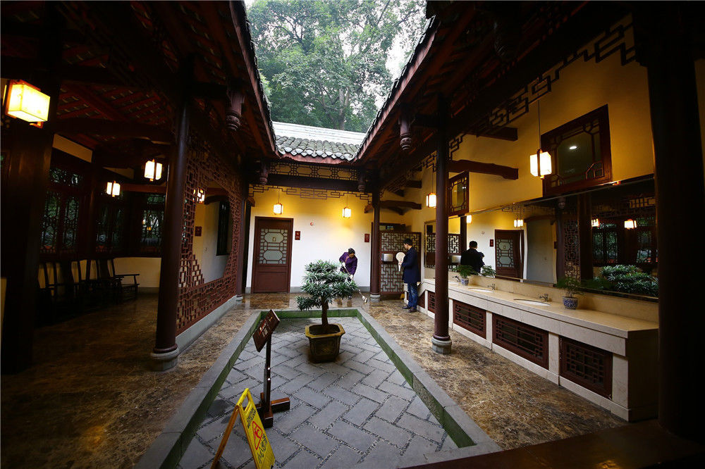 2017年01月03日,四川成都,在成都杜甫草堂景區(qū),現(xiàn)古建筑風格式廁所。據(jù)悉,廁所內部設有母嬰室、飲水設備、公共電話、行李寄存柜,采用古建筑風格,為清一色的川西特色四合院。CYBS/視覺中國