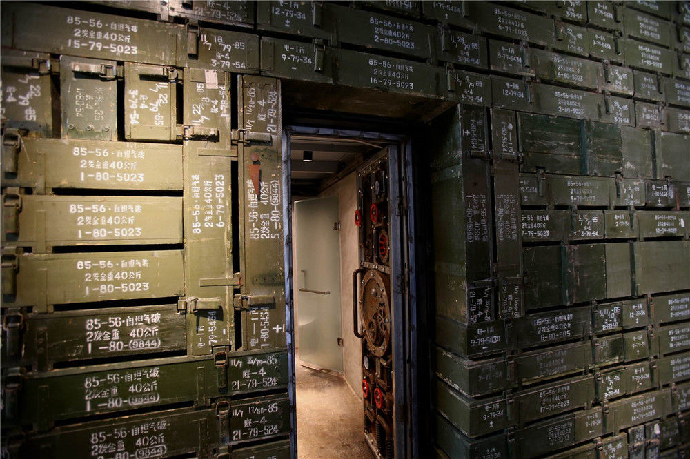 2017年6月18日,河南濟(jì)源王屋山“那些年小鎮(zhèn)”一退役兵工廠內(nèi),一處用千余個(gè)彈藥箱和軍工零部件打造而成的奇特洗手間驚艷亮相。DF/視覺(jué)中國(guó)