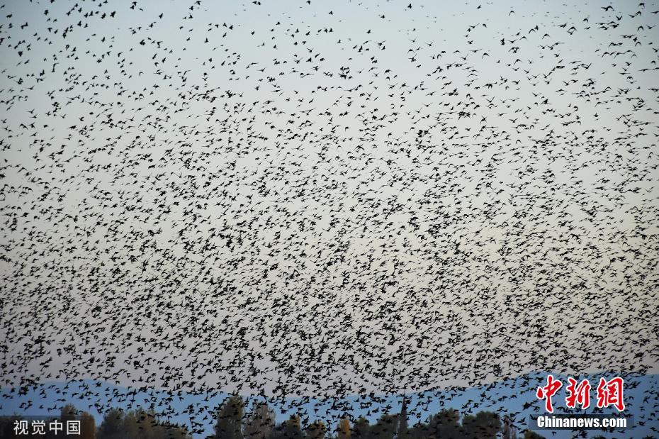 土耳其成群椋鳥(niǎo)遷徙 黑壓壓一片遮擋天空