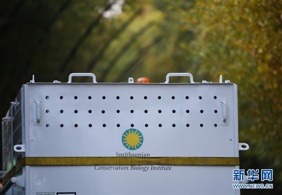11月19日,在美國華盛頓的美國國家動物園,裝有大熊貓“貝貝”的箱子被運往卡車,準備前往機場。 新華社記者 劉杰 攝