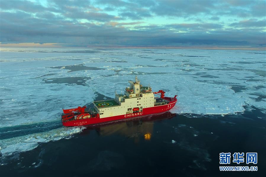 航行在南極圈內(nèi)浮冰區(qū)的“雪龍2”號(11月19日無人機(jī)拍攝)。新華社記者劉詩平攝