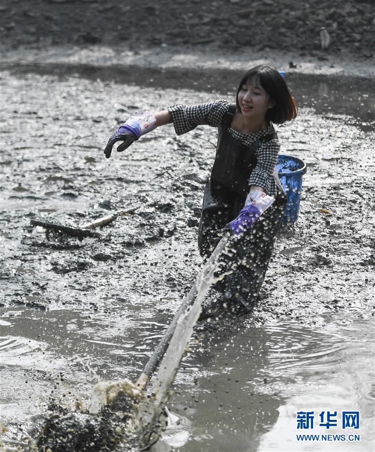 11月24日,游客在西溪濕地體驗(yàn)“干塘”捕魚。新華社記者黃宗治攝