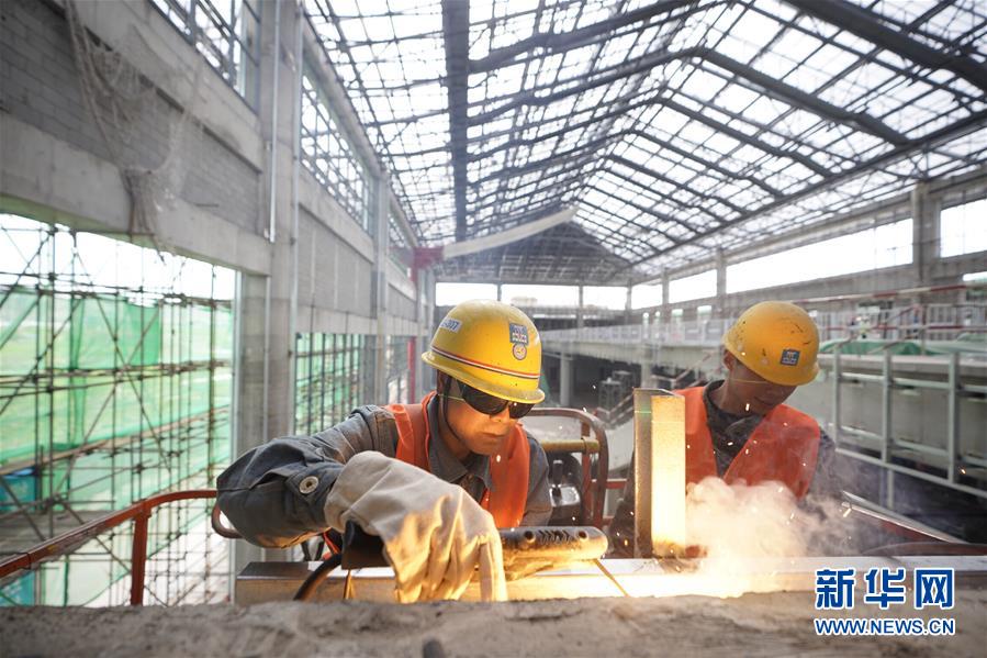 5月29日,工人在京張高鐵下花園北站施工。新華社記者邢廣利攝