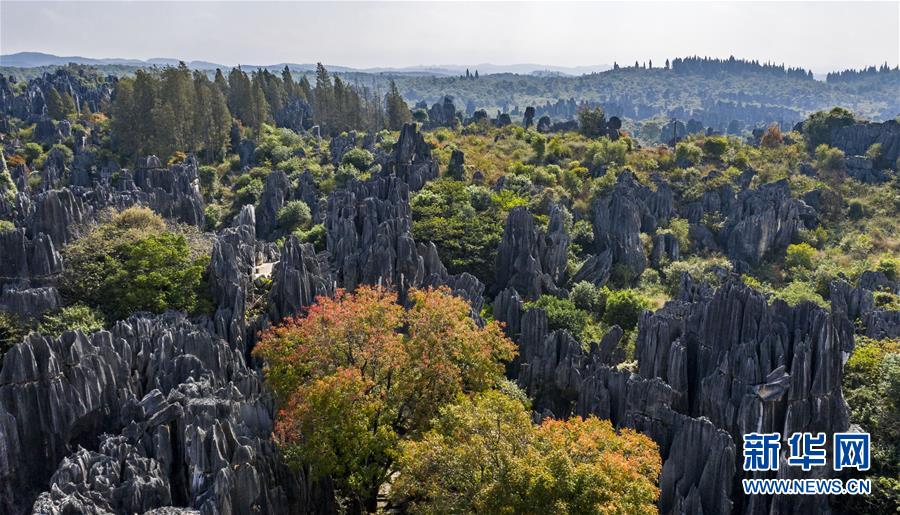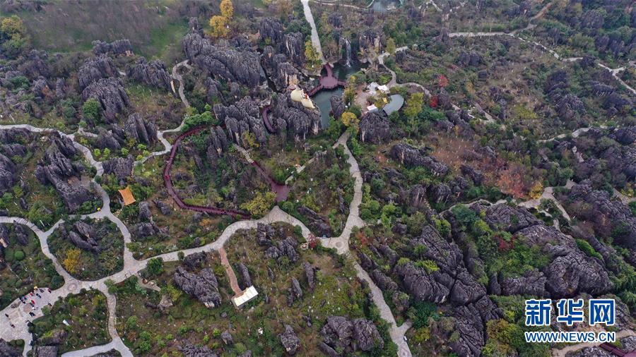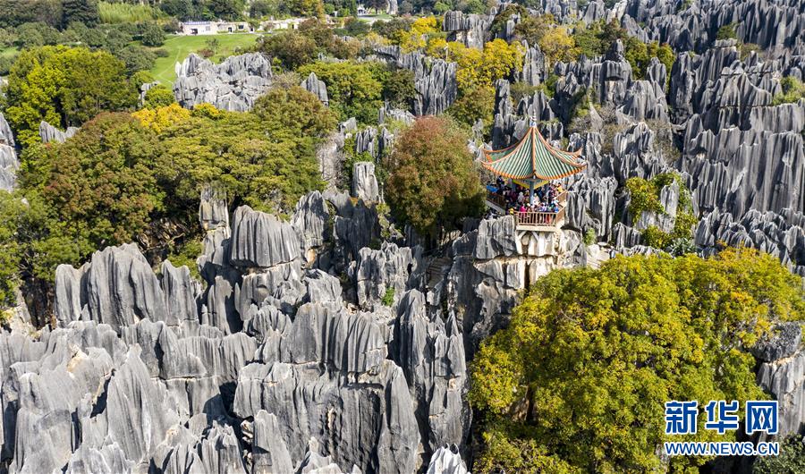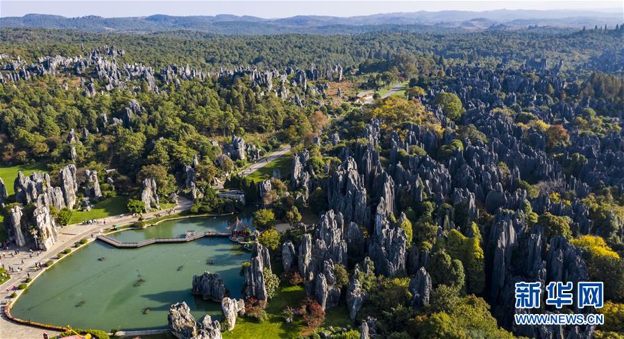 11月28日,空中俯瞰石林景區(qū)(無人機拍攝)。新華社記者江文耀攝