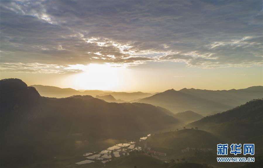 這是武夷山日出后的田園風光(11月17日無人機拍攝)。新華社記者宋為偉攝