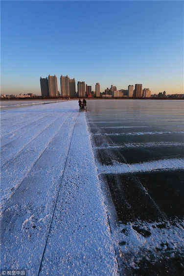 寒冬采冰人:起早貪黑 “淘金”冰雪
