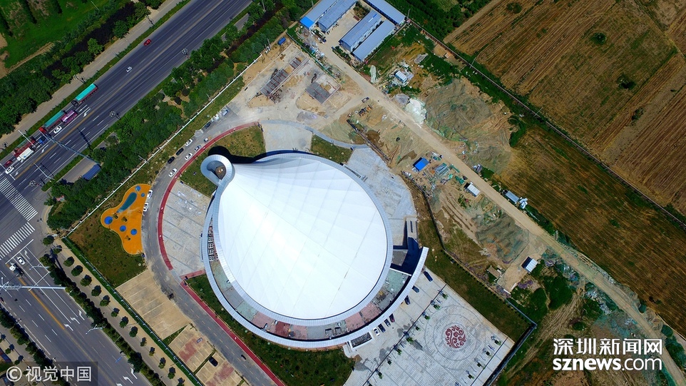 2018年6月13日,航拍河南淮陽(yáng)一座即將竣工落成的體育場(chǎng)館建筑,市民稱(chēng)酷似一個(gè)石磨盤(pán)。