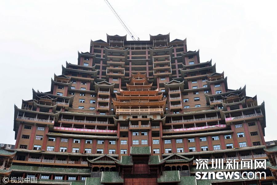 2019年12月8日,貴州省黔南布衣族自治州。位于獨(dú)山縣影山鎮(zhèn)凈心谷的水司府堂占地面積5900平方米,總建筑面積60000平方米,共24層,高99米,進(jìn)深240米,是世界上最高最大最壯觀(guān)的水族建筑,被稱(chēng)為“天下第一水司樓”。
