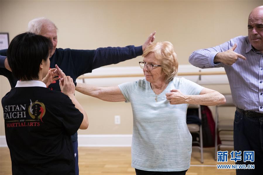 陳思坦的夫人林旭在位于美國(guó)紐約長(zhǎng)島的一所社區(qū)老年活動(dòng)中心指導(dǎo)老人練習(xí)太極(11月20日攝)。這里是陳思坦夫婦開(kāi)設(shè)的一個(gè)公益教學(xué)項(xiàng)目。11月的紐約已進(jìn)入初冬,位于美國(guó)紐約長(zhǎng)島的思坦太極武術(shù)中心依然一片紅火景象,學(xué)員們從5歲的孩童到80多歲的老人,操練著太極拳、太極劍、長(zhǎng)拳等武術(shù)招式。這里的主人陳思坦、林旭夫婦,也從早忙到晚,精心指導(dǎo)每一位學(xué)員的一招一式。6歲習(xí)武,22歲成為中國(guó)全國(guó)冠軍,26歲獲得首個(gè)世界冠軍……直到30歲退役,陳思坦在運(yùn)動(dòng)員生涯中曾獲得過(guò)32次國(guó)內(nèi)外各類(lèi)武術(shù)大賽冠軍。36歲那年,懷著以太極拳和中國(guó)武術(shù)為媒介向世界推廣中國(guó)文化的夢(mèng)想,陳思坦到美國(guó)紐約尋找新的舞臺(tái)。經(jīng)過(guò)十多年的艱苦打拼,陳思坦夫婦目前在紐約長(zhǎng)島、法拉盛和曼哈頓都開(kāi)設(shè)了長(zhǎng)期的課程,思坦太極注冊(cè)在編的各個(gè)年齡段的學(xué)員近千人,有些“高徒”現(xiàn)在自己也開(kāi)班授課,將太極推向更多地方。陳思坦夫婦現(xiàn)在思考更多的是如何將太極和武術(shù)推廣給更多的美國(guó)人,并讓他們理解其中蘊(yùn)含的平衡、和諧的中國(guó)文化理念。他們創(chuàng)辦了紐約太極健身氣功活動(dòng)日,在各類(lèi)學(xué)校和社區(qū)開(kāi)設(shè)太極或者武術(shù)課程,并利用美國(guó)的亞太裔文化月和多元文化節(jié)舉行武術(shù)和太極表演和體驗(yàn)課程,讓更多美國(guó)人親眼看到、親身體會(huì)中國(guó)武術(shù)的魅力。從2011年起,他們還參與創(chuàng)辦了紐約太極大賽,如今已舉行九屆,吸引了美國(guó)、加拿大和中國(guó)國(guó)內(nèi)的隊(duì)伍參賽,影響力逐漸擴(kuò)大。新華社記者王迎攝