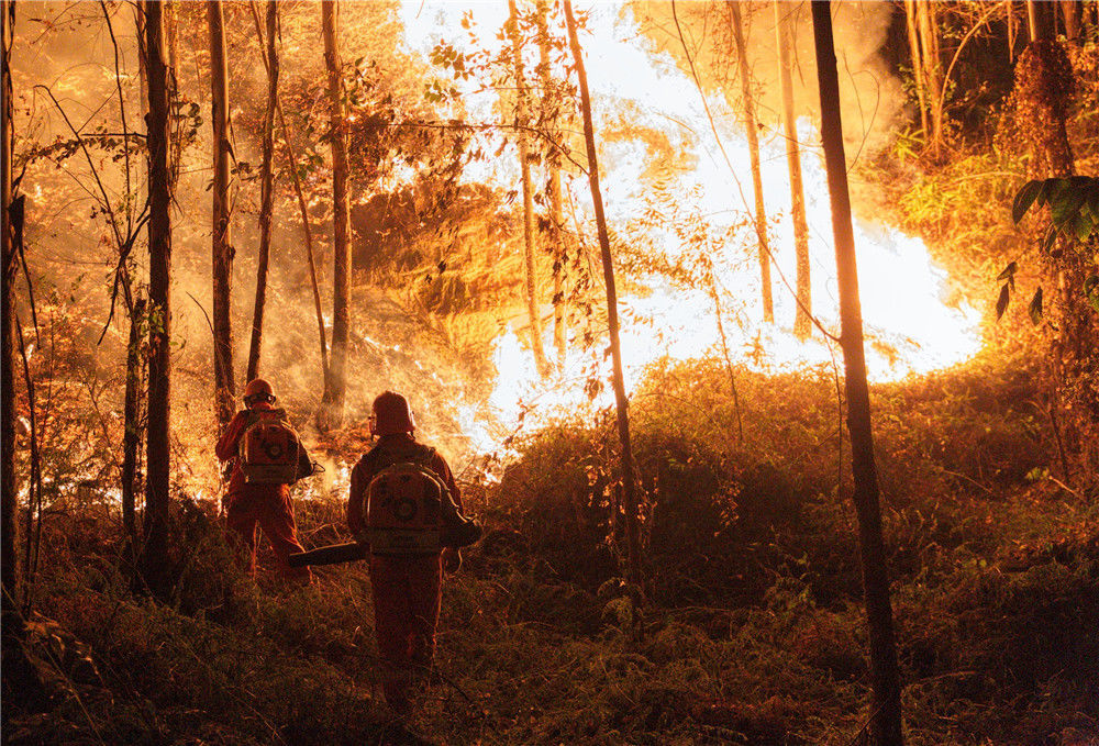 2019年12月7日凌晨一時(shí)多,廣東佛山,來(lái)自英德東華鎮(zhèn)的消防員們摸黑上山作業(yè)。經(jīng)過(guò)大約一個(gè)小時(shí)的奮戰(zhàn)后,山頭明火得到有效控制。