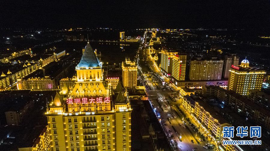 8月28日無(wú)人機(jī)拍攝的滿(mǎn)洲里市中心夜景。滿(mǎn)洲里市位于呼倫貝爾大草原腹地。新華社記者沈伯韓攝