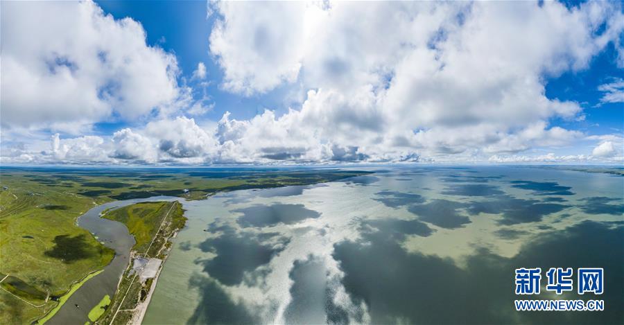 8月28日無(wú)人機(jī)拍攝的呼倫湖國(guó)家級(jí)自然保護(hù)區(qū)。新華社記者任軍川攝