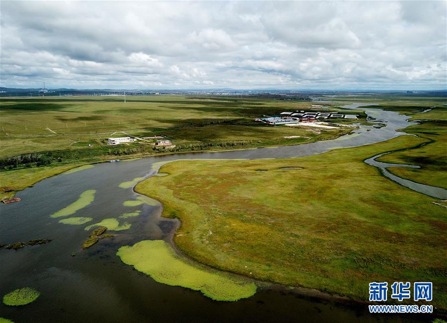 8月28日無人機(jī)拍攝的呼倫湖國家級(jí)自然保護(hù)區(qū)。新華社記者任軍川攝