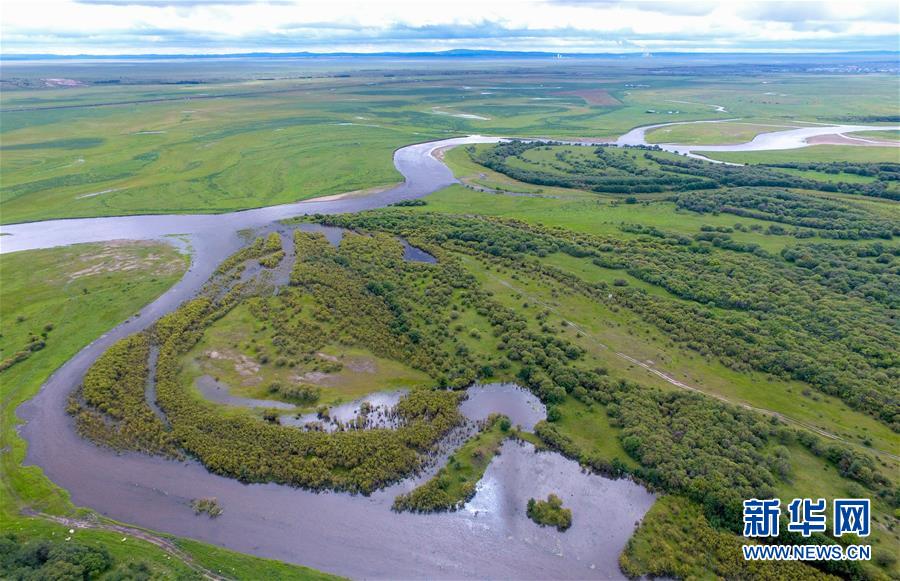 8月26日無人機(jī)拍攝的伊敏河。伊敏河流經(jīng)呼倫貝爾草原。新華社記者彭源攝