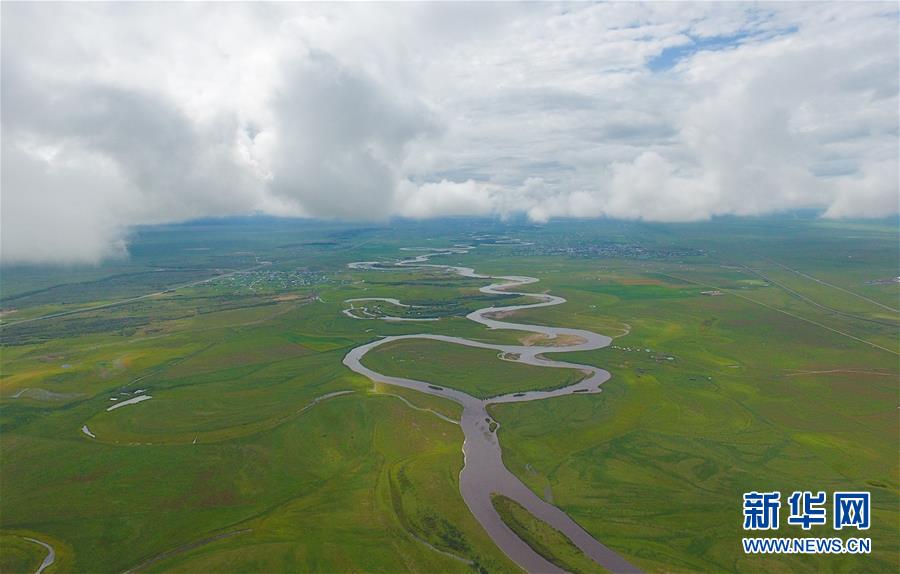 8月26日無人機(jī)拍攝的伊敏河。伊敏河流經(jīng)呼倫貝爾草原。新華社記者彭源攝