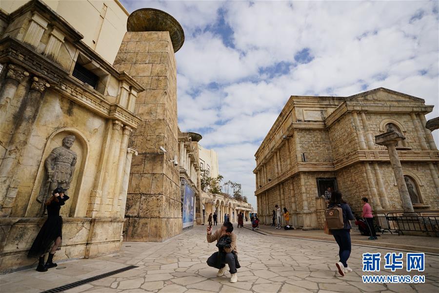 在澳門漁人碼頭附近,一名女孩拍照留念(12月17日拍攝)。新華社記者李鋼攝