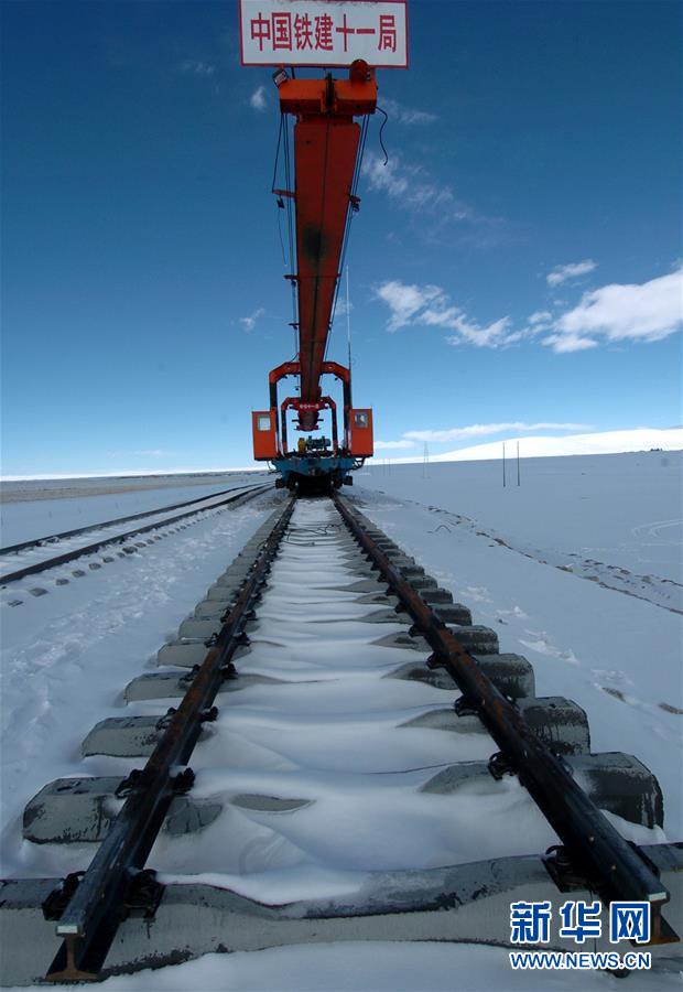 青藏鐵路在鋪軌建設中(2004年11月19日攝)。新華社記者覺果攝