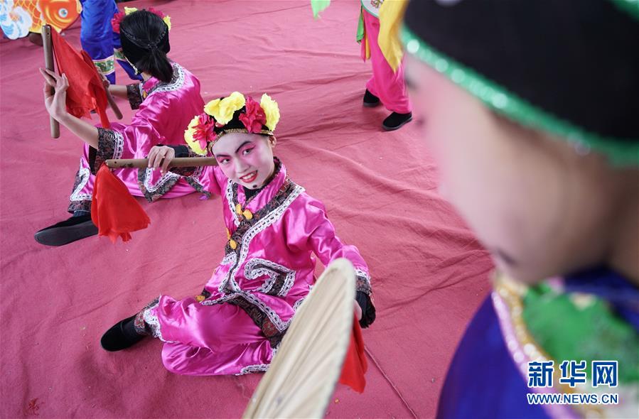 12月19日,河北省灤州市小閆營(yíng)小學(xué)學(xué)生在排練地秧歌。新華社記者 牟宇 攝